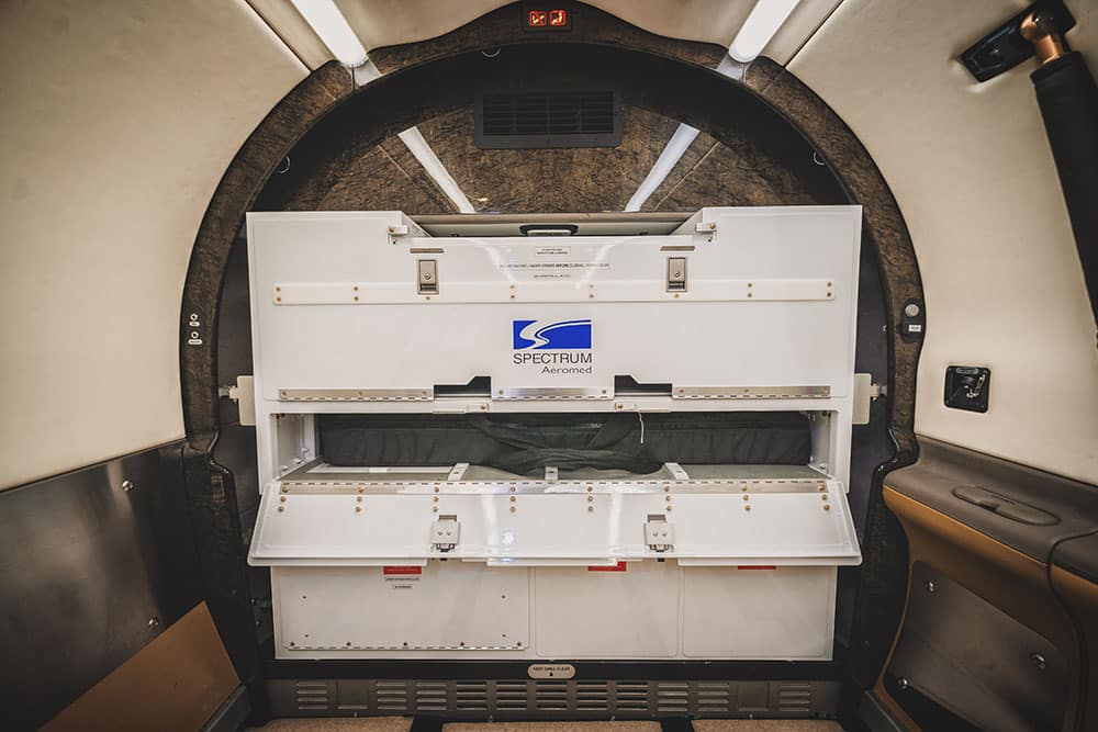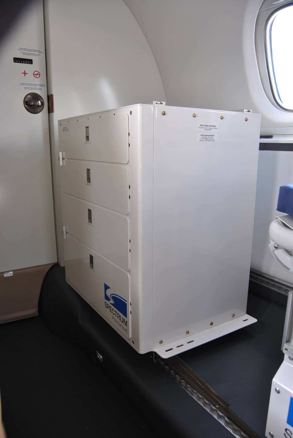 A range of modular storage cabinet options is available, designed to secure directly to the aircraft’s seat tracks. These cabinets offer varying storage capacities and configurations, making them ideal for organizing critical medical supplies while maintaining cabin efficiency and accessibility. Custom cabinetry can also be developed to safely secure equipment in flight. Contact us to learn what options are available for your specific aircraft.