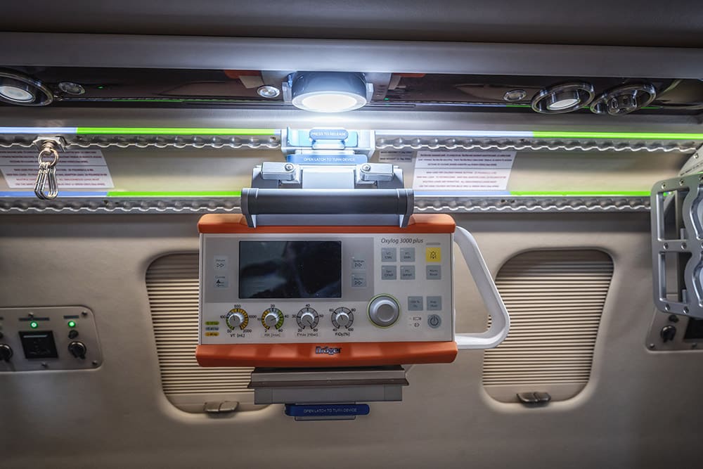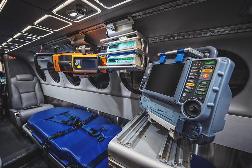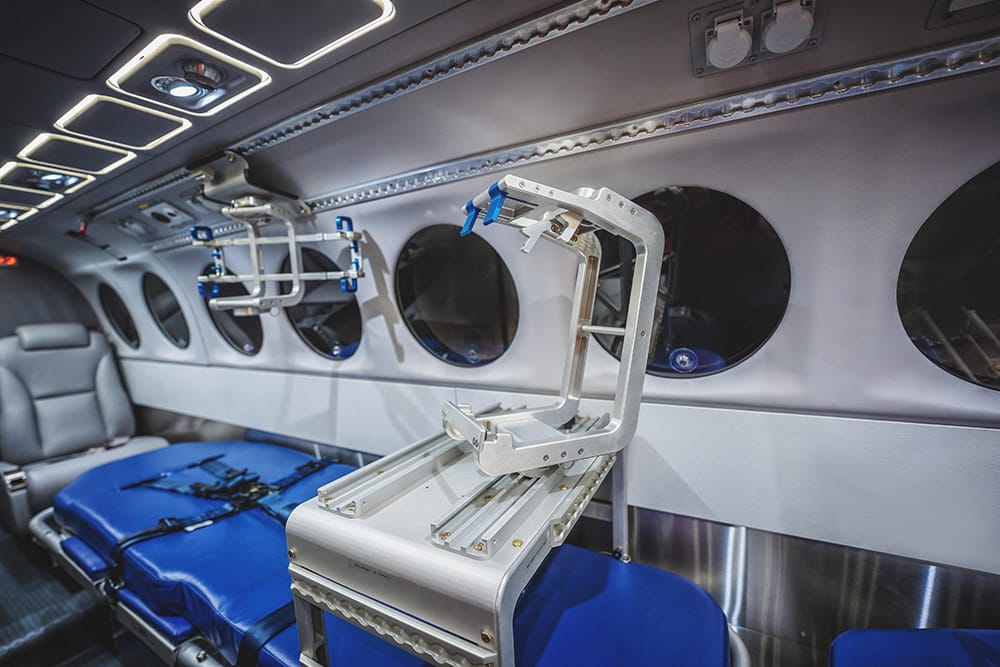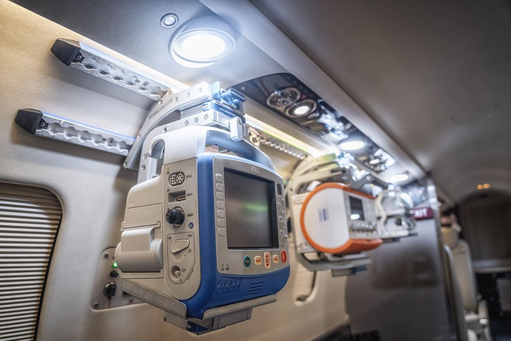 Spectrum Aeromed’s medical device mounts are approved for use in-flight and are designed to securely hold critical equipment during transport. These mounts can be installed on stretcher bridges, integrated medwalls, sidewall tracks, or custom medical cabinets—offering flexible, reliable options to fit a variety of aircraft configurations and mission needs.